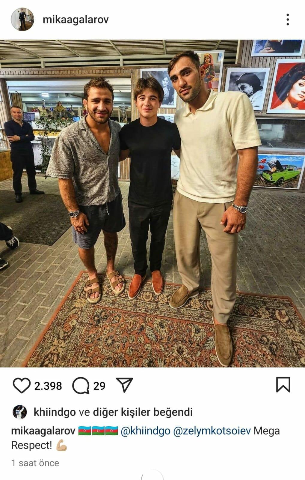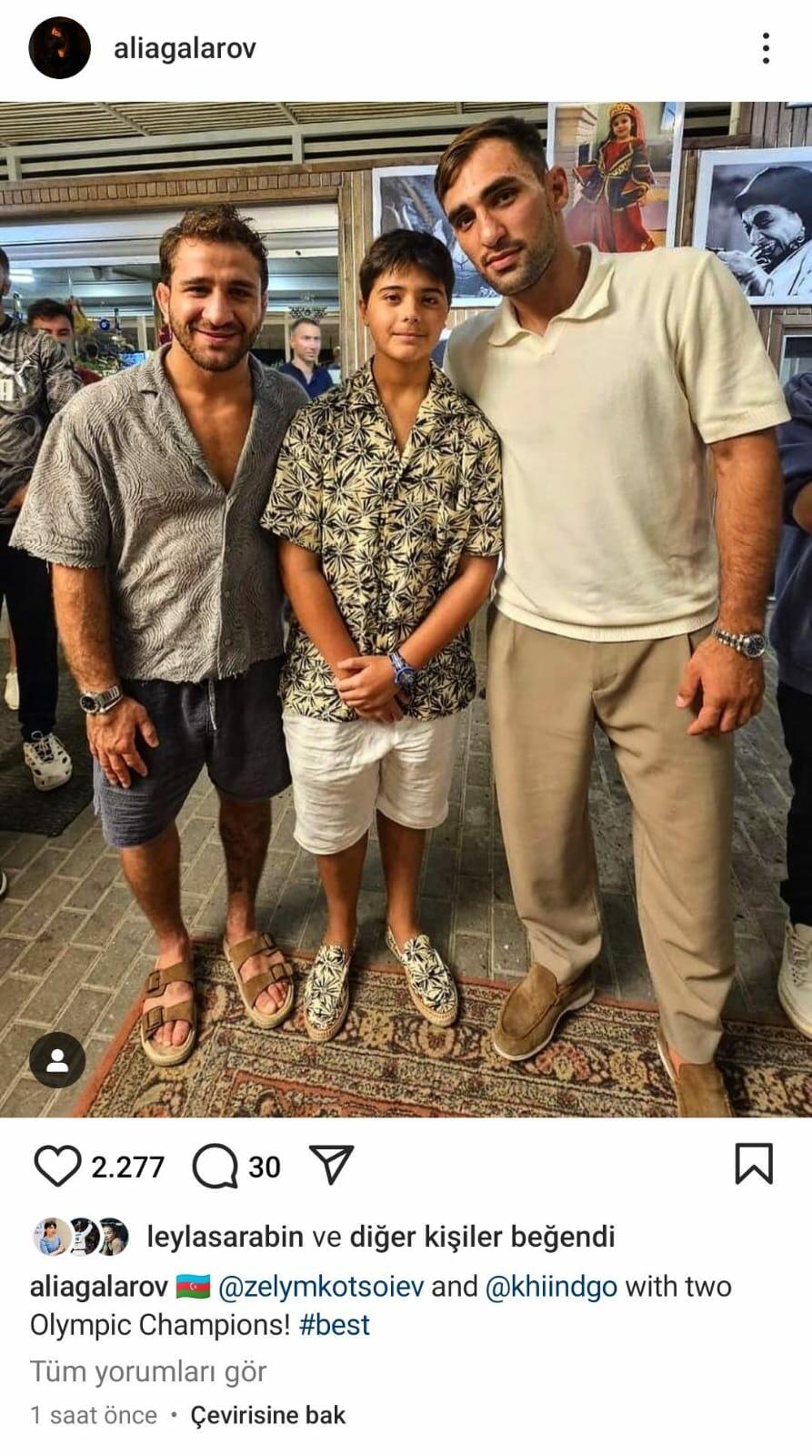 Xalq artisti Emin Ağalarovun əkiz övladları Mikayıl və Əli Olimpiya çempionlarımız Hidayət Heydərov və Zelim Kotsayevlə görüşüblər. SİA xəbər verir ki, onlar birgə çəkdirdikləri fotoşəkilləri İnstaqram səhifələrində paylaşıblar.