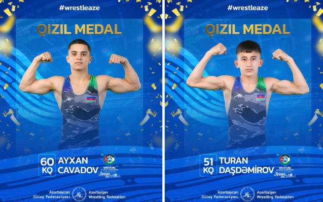Azərbaycanın iki güləşçisi İordaniyanın Əmman şəhərində 17 yaşadək yeniyetmələr arasında dünya çempionatında qızıl medal qazanıb.