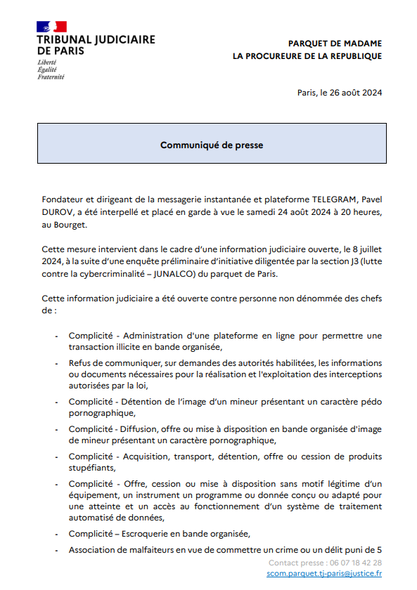 Teleqramın qurucusu Pavel Durov 12 cinayətdə ittiham olunub.
