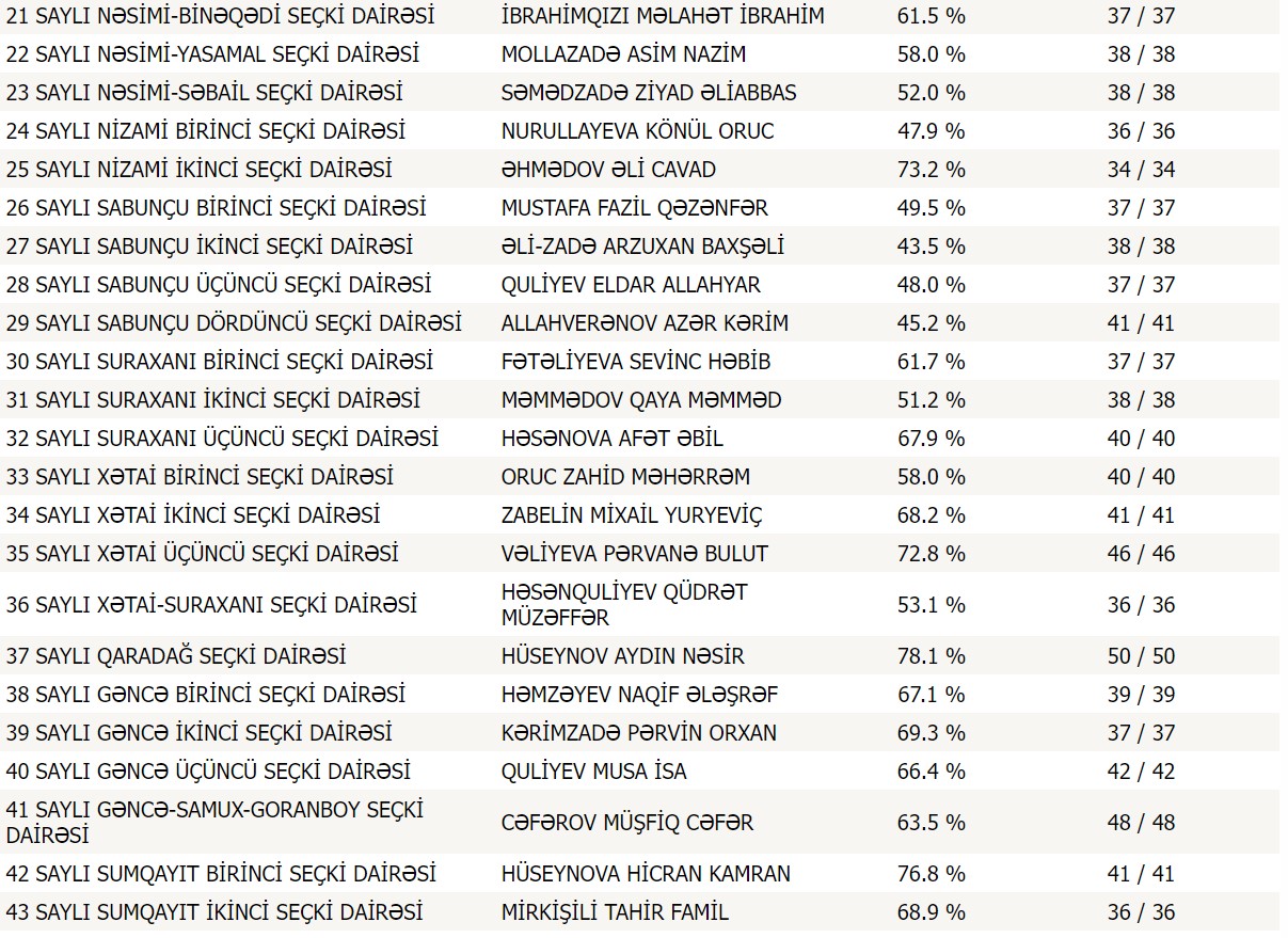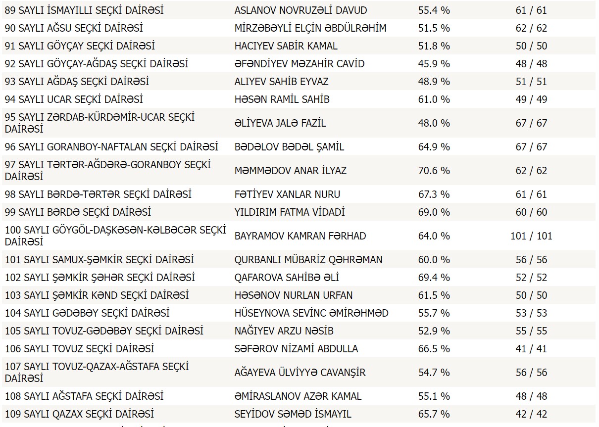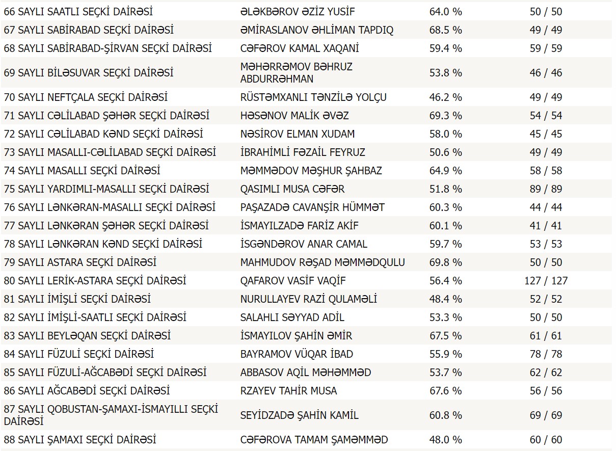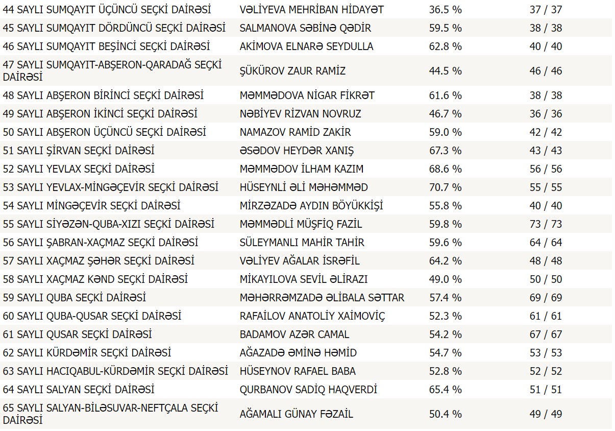 Respublika üzrə 6478 məntəqənin dairələr üzrə lider namizədlərinin siyahısını təqdim edirik:
