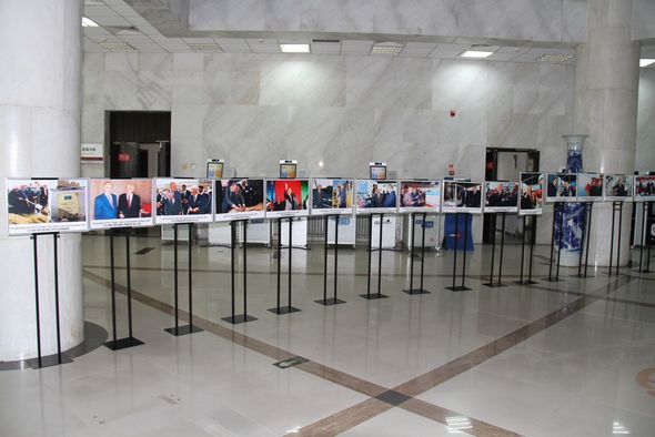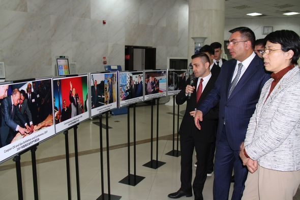 Daha sonra, ümummilli lider Heydər Əliyevin 100 illik yubileyi münasibətilə Çin Neft Universitetində təşkil olunan, ulu öndərin ölkəmizin neft-qaz sənayesinin inkişafına göstərdiyi yüksək diqqəti əks etdirən nadir fotoların da yer aldığı sərginin açılış mərasimi keçirilib. Sərginin açılışında ulu öndər Heydər Əliyevin uzaqgörən və müdrik siyasəti nəticəsində ölkəmizin bütün sahələrdə davamlı inkişafı üçün sağlam təməllərin qoyulduğu qeyd edilib. Ümummilli lider Heydər Əliyevin müəyyənləşdirdiyi enerji strategiyasının ölkəmizin hərtərəfli inkişafında mühüm rolundan, ulu öndərin Azərbaycan neftçilərinə göstərdiyi qayğıdan bəhs olunub. Açılışda Çin Xalq Respublikasında təşkil olunan sərginin dost Çin xalqının Azərbaycanın ümummilli liderinə olan sonsuz hörmətinin bariz nümunəsi olduğu diqqətə çatdırılıb. Ulu öndər kimi dahi şəxsiyyətə həsr olunan sərginin universitetdə təşkilinin təhsil ocağı üçün vacibliyi vurğulanıb.