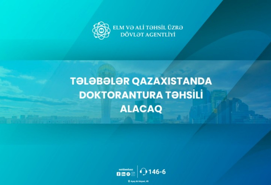 Azərbaycan Respublikasının Elm və Təhsil Nazirliyi ilə Qazaxıstan Respublikasının Elm və Ali Təhsil Nazirliyi arasında təhsil sahəsində əməkdaşlıq haqqında 2017-ci il 3 aprel tarixli Sazişə uyğun olaraq, Azərbaycan Respublikası vətəndaşları 2024-2025-ci tədris ili üzrə doktorantura səviyyəsində Qazaxıstanda təhsil almaq imkanı qazanıblar.