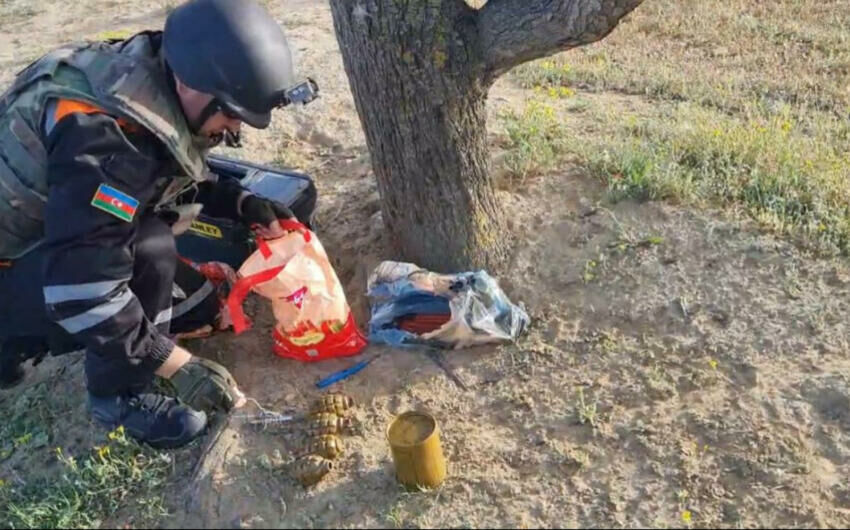 Hüquq-mühafizə orqanı əməkdaşları ilə birgə ərazidə müvafiq təhlükəsizlik tədbirləri görüldükdən sonra xüsusi təlim görmüş itin tətbiqi ilə aparılan əməliyyat nəticəsində döyüş tətbiqinə yararlı 4 ədəd F-1 əl qumbarası, 13 ədəd UZRQM partladıcısı, 2 ədəd süngü bıçağı, 7 ədəd 7,62 mm-lik və 34 ədəd 5,45 mm-lik mərmi aşkar edilib.
