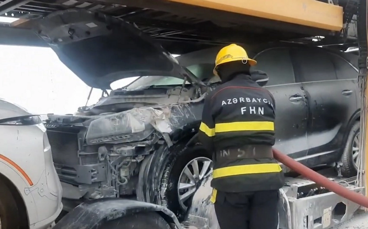 Yük avtomobili və qoşqunun üzərində olan minik avtomobilləri yanğından mühafizə olunub.