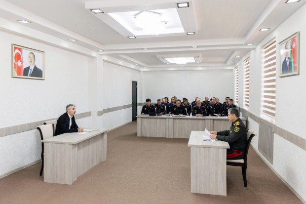 Sonra general-polkovnik V.Eyvazov bölgə üzrə polis orqanlarına xidmətə qəbulla bağlı sıra baxışı keçirib. Vətən müharibəsinin 36 iştirakçısının da iştirak etdiyi sıra baxışında xidmətə qəbulun şərtlərinə uyğun gələn 191 nəfər seçim turunun növbəti mərhələsinə buraxılıb.