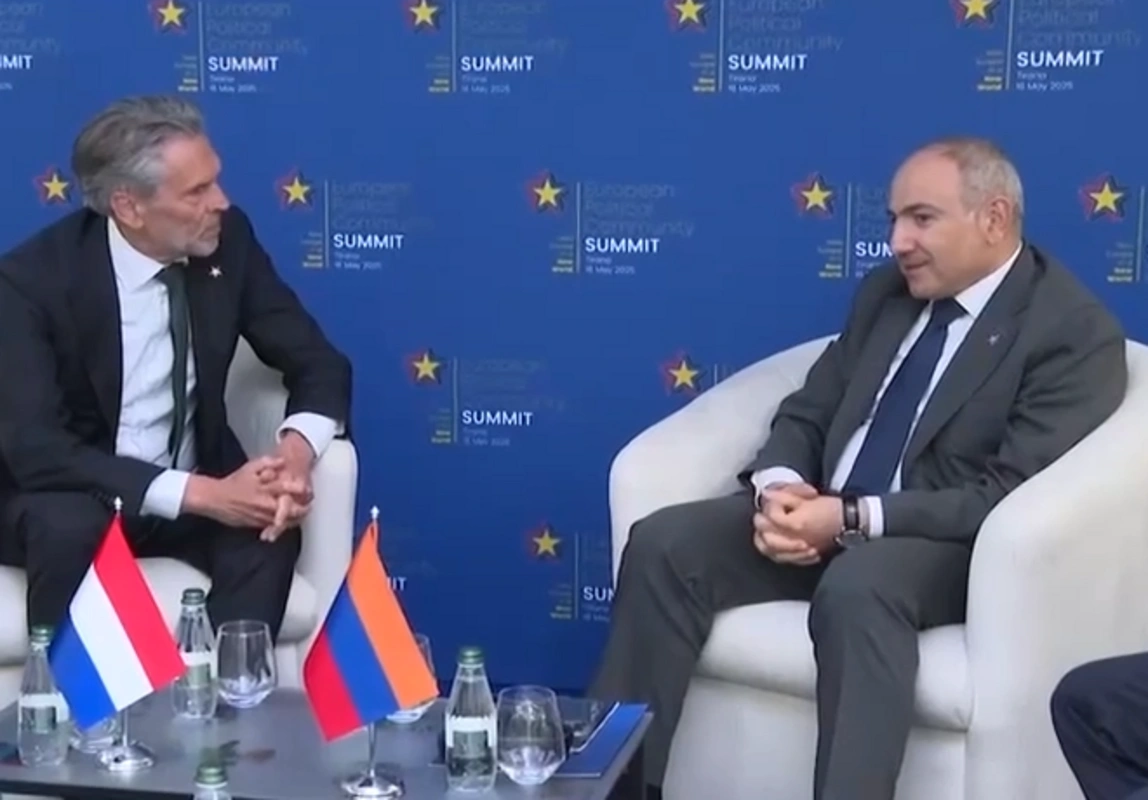 Albaniya paytaxtına səfəri çərçivəsində Ermənistan hökumətinin başçısı Nikol Paşinyan niderlandlı həmkarı Dik Şuf ilə görüşüb. Görüş zamanı masa üzərindəki Ermənistan bayrağı əksinə asılıb.