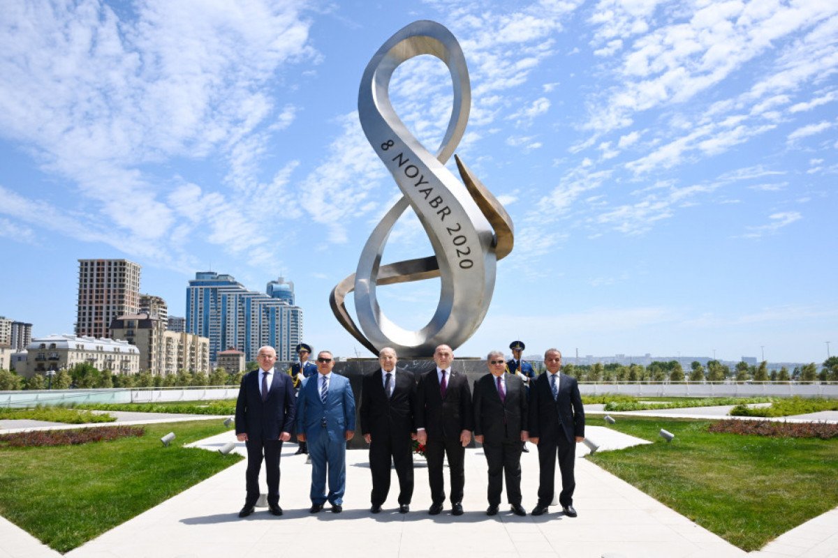 Senatın sədri parkdakı Zəfər abidəsinin önünə əklil qoyub.