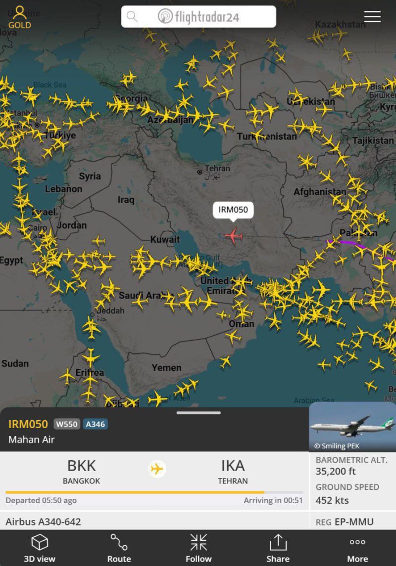 İyunun 13-ü gecə saatlarından başlayaraq İsrailin İrana qarşı həyata keçirdiyi əməliyyat və axşam saatlarından etibarən İranın cavab hücumlarına başlaması səbəbindən İrandan İsrailə qədər bütün hava sahəsi mülki təyyarələrin uçuşu üçün bağlanıb.
