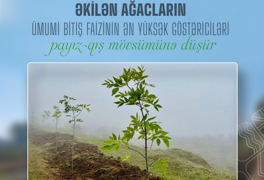 Meşələrin İnkişafı Xidmətinin rəsmisi Vahid Fərzəliyev AZƏRTAC-a bildirib ki, aparılan son iki ilin müqayisəli təhlillərinə görə, əkilən ağacların ümumi bitiş faizinin ən yüksək göstəriciləri payız-qış mövsümünə düşür.