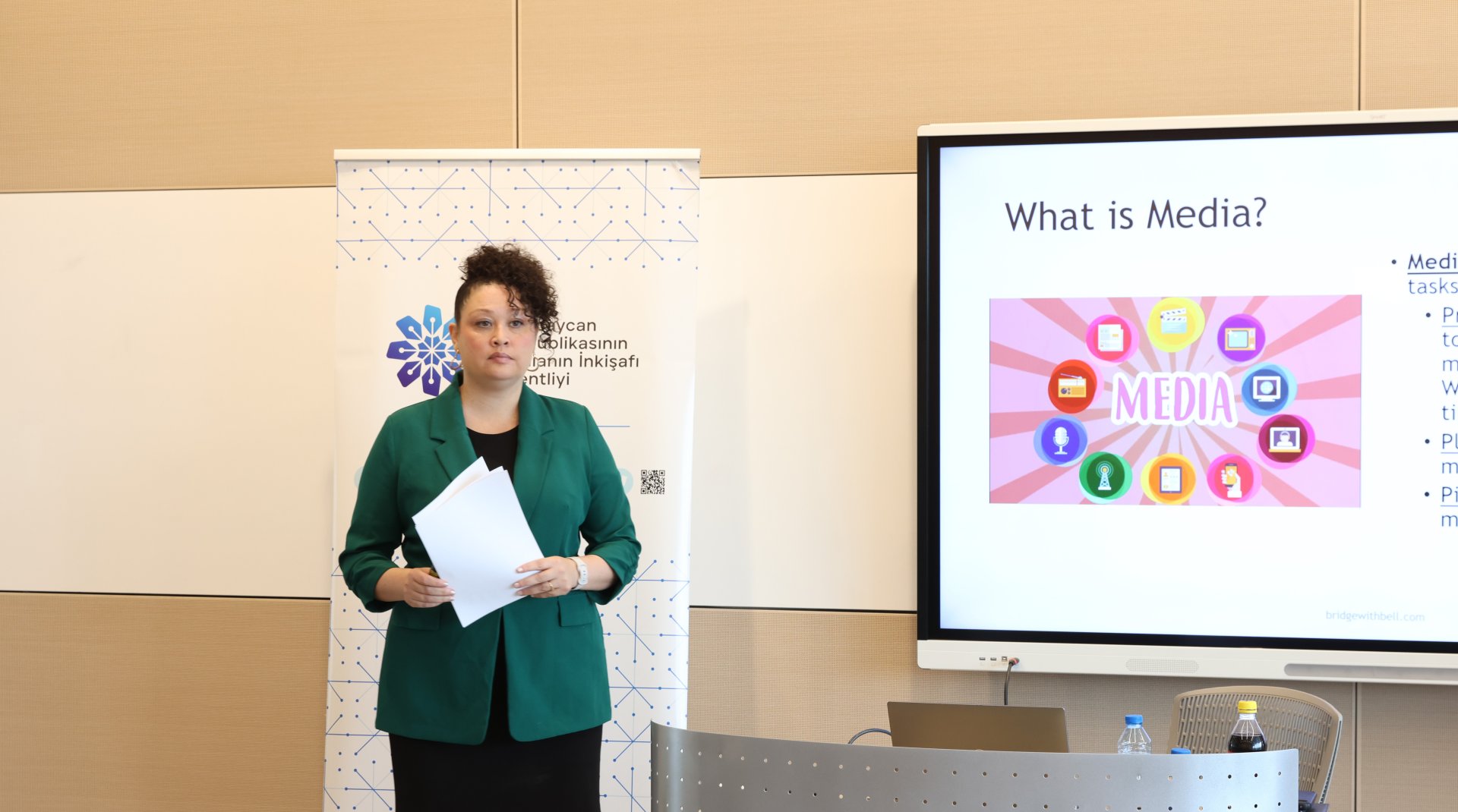 ABŞ, Çin və müxtəlif ölkələrdə fəaliyyət göstərmiş beynəlxalq kommunikasiya mütəxəssisi, təcrübəli media eksperti, təlimçi Dr. Tiffany J. Bell süni intellektin mediada istifadəsi ilə bağlı mövcud yanaşmalardan danışaraq, bu texnologiyanın verdiyi imkanlar, qarşıya çıxardığı risklər və onun peşəkar jurnalistikada səmərəli tətbiqi barədə nümunələr təqdim edib.