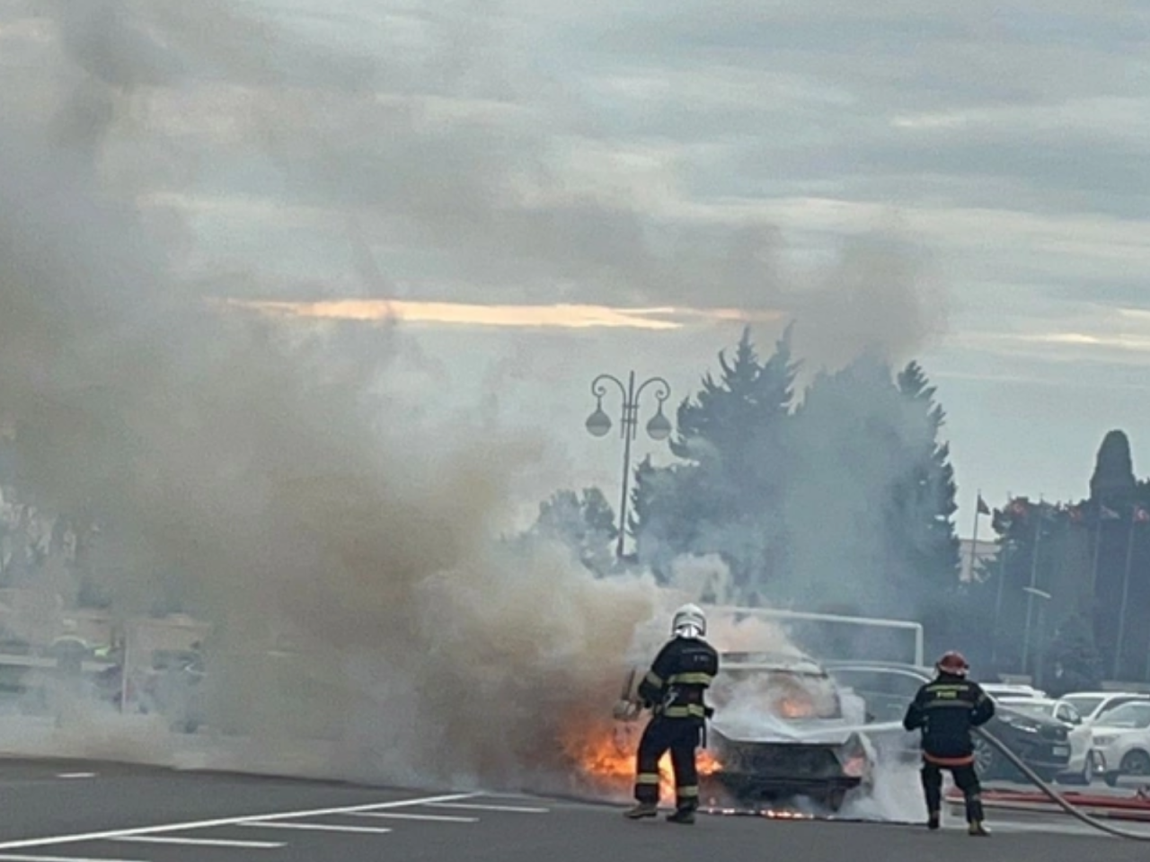 Milli Məclisin qarşısında avtomobil yandı - FOTO