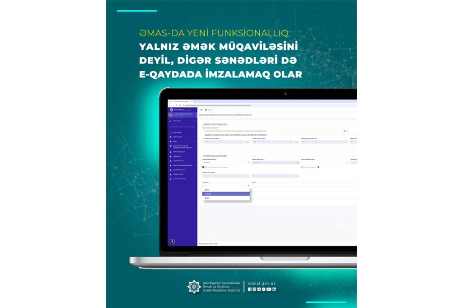 Əmək və Əhalinin Sosial Müdafiəsi Nazirliyinin “Əmək və Məşğulluq” altsistemində (ƏMAS) yeni funksionallıq yaradılıb.