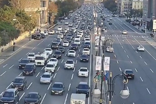 Bakının əksər yollarında nıqliyyat sıxlığı müşahidə olunur.