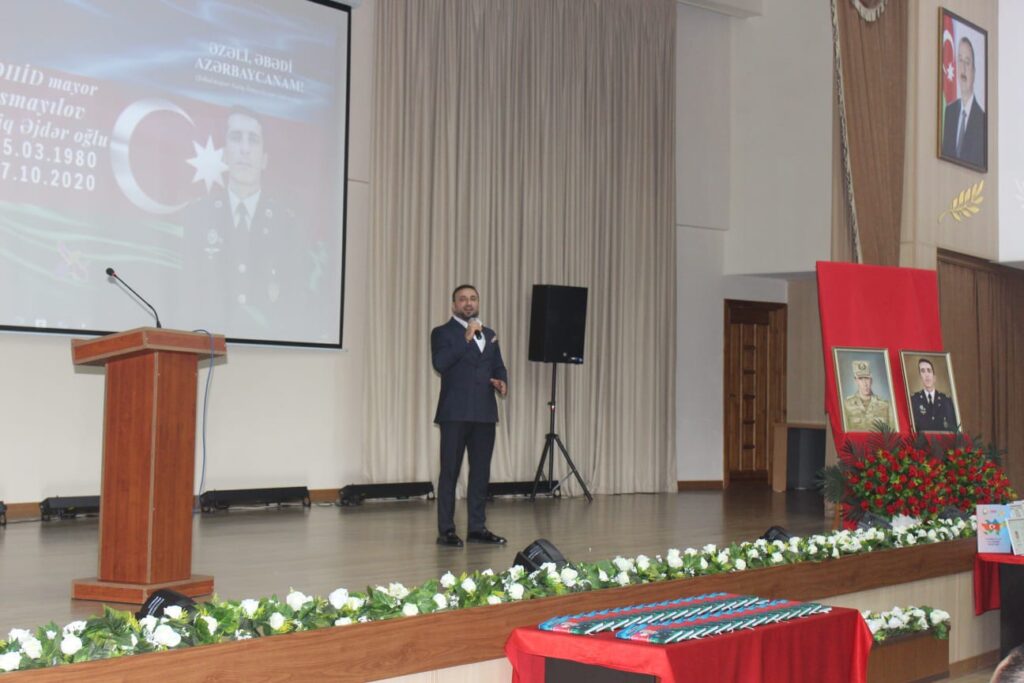 Dünya Gənc Türk Yazarlar Birliyinin (DGTYB) təşkilatçılığı ilə Prezident təqaüdçüsü, yazıçı, publisist Şahanə Müşfiqin Vətən müharibəsi şəhidimiz mayor Natiq İsmayılovun xatirəsinə həsr etdiyi “Əzəli, əbədi Azərbaycanam!” kitabının təqdimat mərasimi keçirilib. Natiq İsmayılovun məzunu olduğu Cəmşid Naxçıvanski adına Hərbi Liseydə keçirilən tədbirdə şəhidimizin ailə üzvləri, yaxınları, kursant və zabit yoldaşları, eləcə də şəhid ailələri, ictimaiyyət nümayəndələri və jurnalistlər iştirak ediblər.