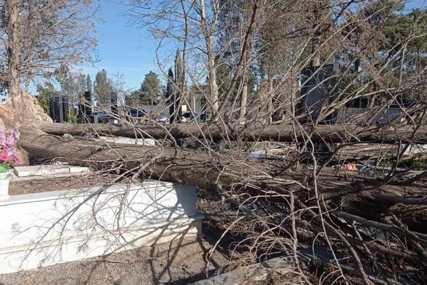 В Гяндже сильный ветер повалил около 10 крупноствольных деревьев на могилы.
