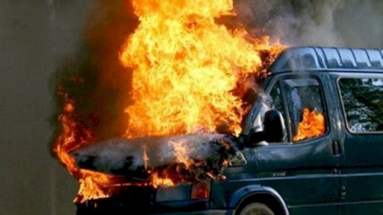 Ağdaş rayonunda mikroavtobus yanıb.