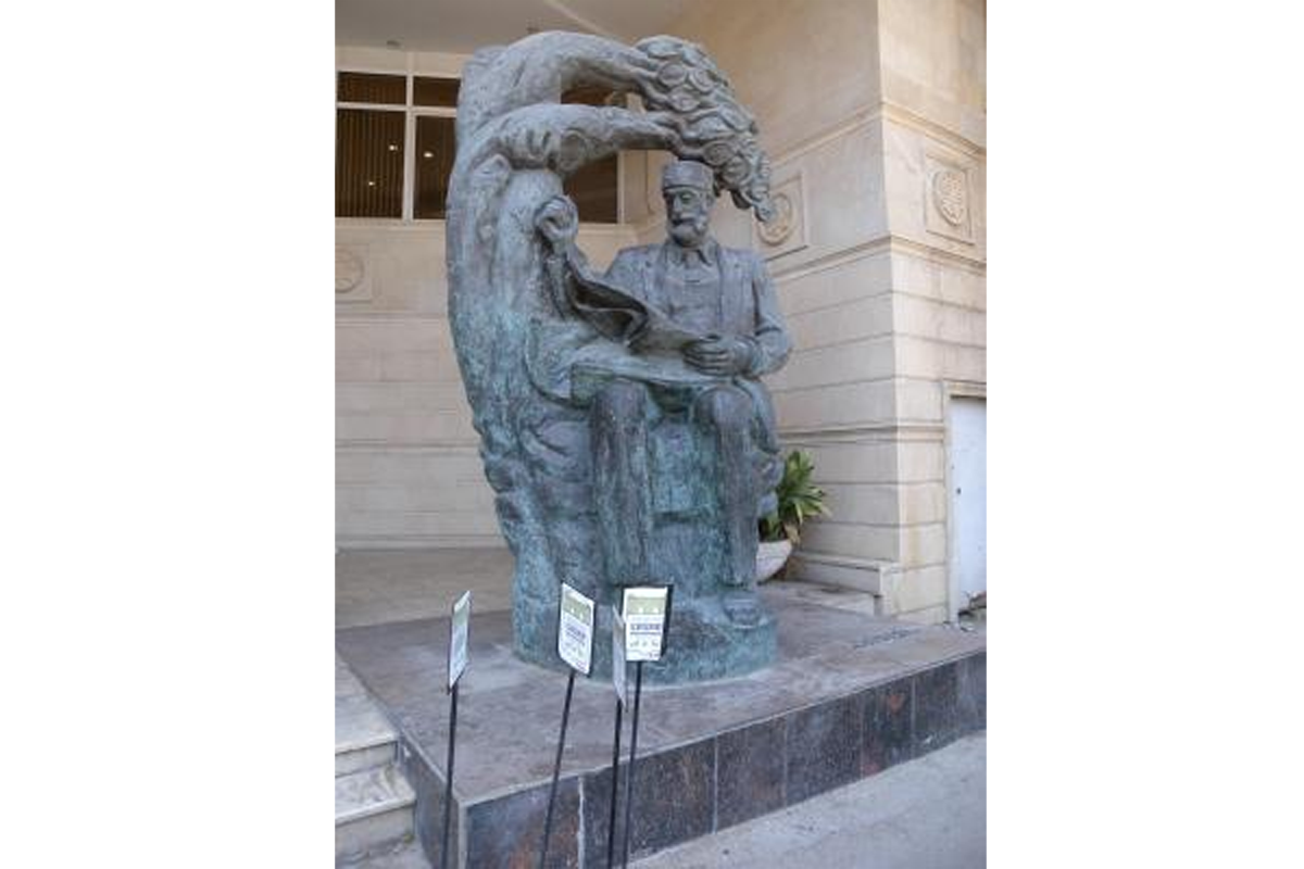 "İçərişəhərdə Milli Ensiklopediyanın keçmiş binasının birinci mərtəbəsi restoran kimi fəaliyyət göstərir. Binanın qarşısında Həsən bəy Zərdabinin heykəli var".