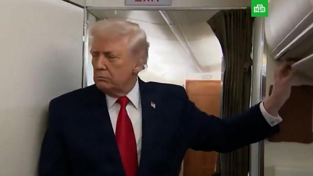 ABŞ Prezidenti Donald Tramp təyyarə göyərtəsində olarkən kuryoz hadisə ilə üzləşib. Məlumata görə, dövlət başçısı jurnalistlərlə ünsiyyət qurarkən (ayaqüstü brifinq zamanı) tualetin qapısı ona dəyib.