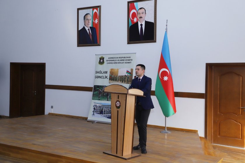 Daha sonra SHXÇDX-nın Kürdəmir rayon şöbəsinin rəisi polkovnik-leytenant Siludin Əhmədov ilkin hərbi qeydiyyat, tibbi şəhadətləndirmə, çağırışçıların hüquq və vəzifələri barədə geniş məlumat verib və tədbir iştirakçılarını maraqlandıran sualları cavablandırıb.