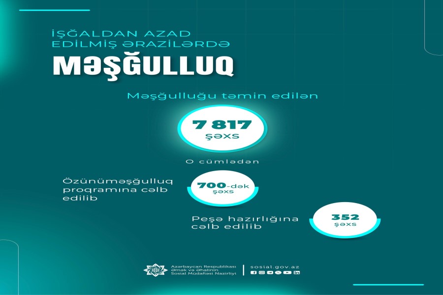 Əmək və Əhalinin Sosial Müdafiəsi Nazirliyinin tabeliyində Dövlət Məşğulluq Agentliyi işğaldan azad edilmiş ərazilərimizə köçürülmüş sakinlərin məşğulluq tədbirləri ilə əhatə olunması işlərini davam etdirir.