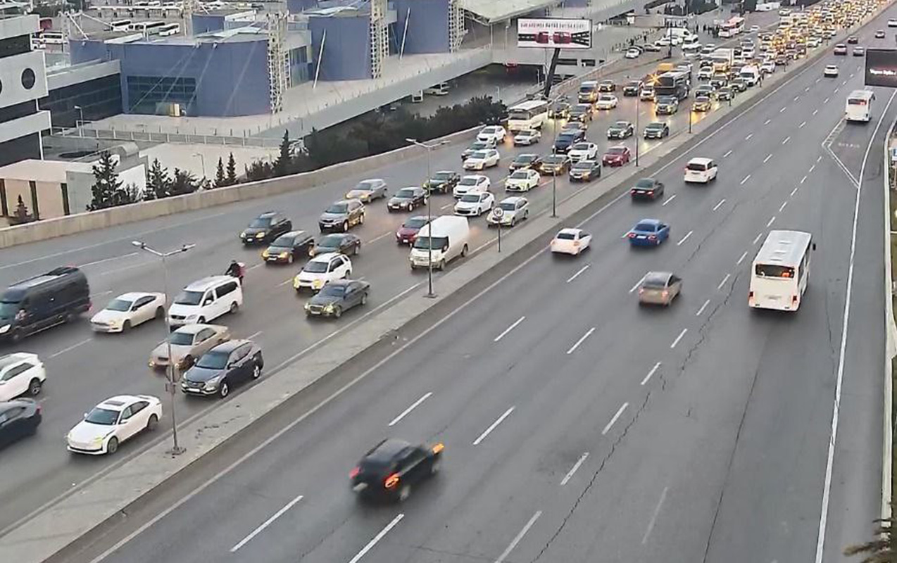 Bakının bir sıra yollarında nəqliyyatın sıxlığı müşahidə olunur.