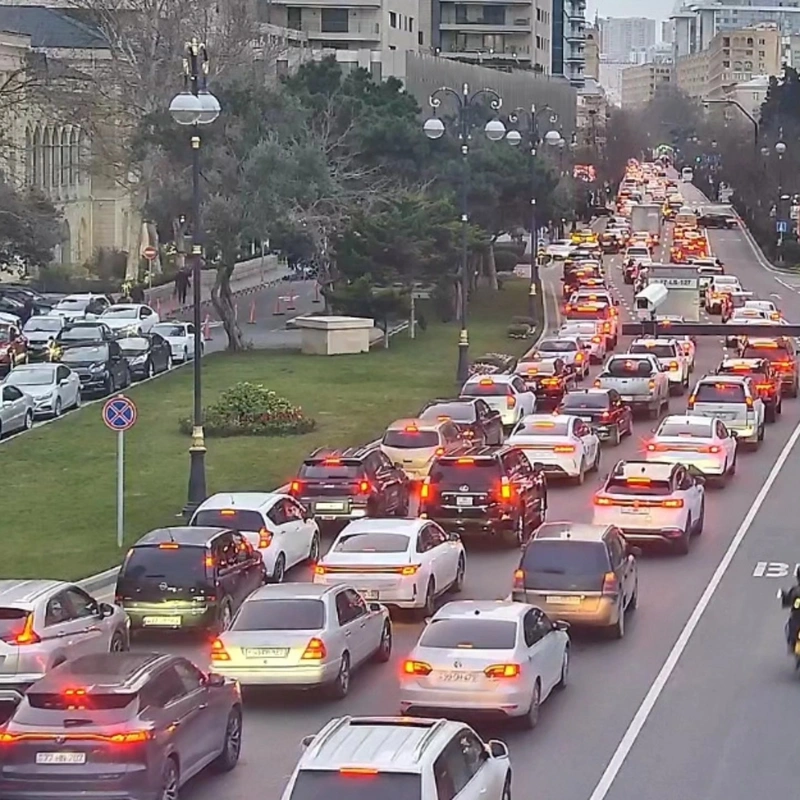 Bakının bir sıra yollarında nəqliyyatın sıxlığı müşahidə olunur.
