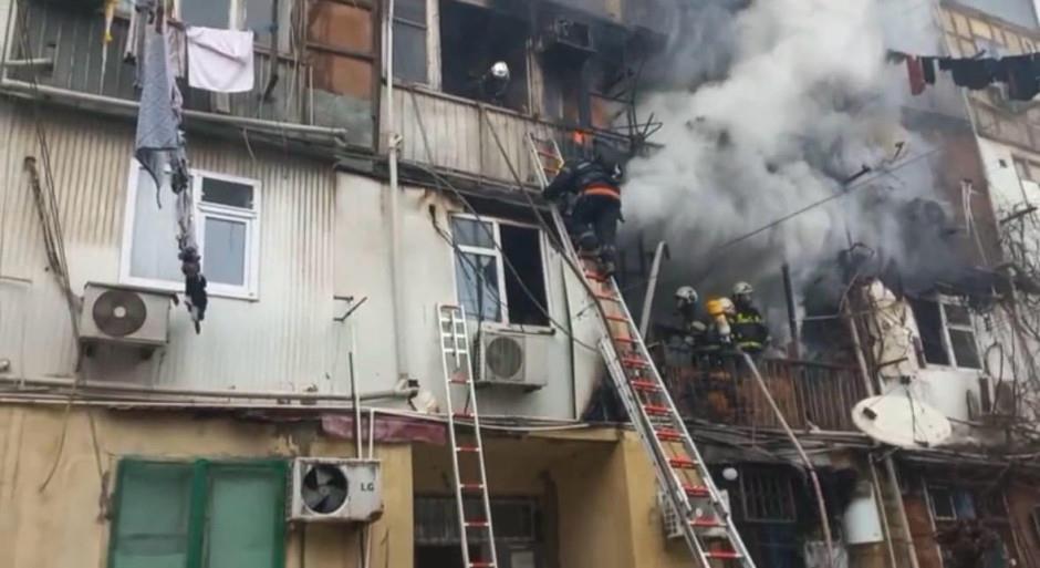 Bakıdakı binada baş vermiş yanğın qısa müddətdə söndürülüb - FOTOLAR/ VİDEO