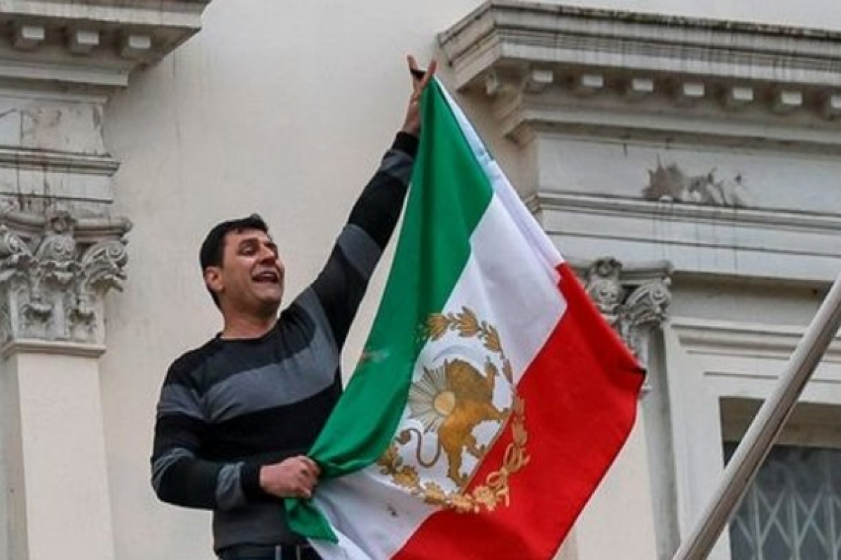 Məlumata görə, şəhərin Kensinqton rayonunda bir nümayişçi səfirliyin eyvanına qalxaraq bayrağı çıxararaq yerə atıb və üzərində “Şir və Günəş” əks olunmuş şah dövrünün bayrağını qaldırıb.