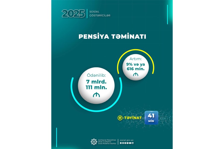 Son bir ildə 41 min, elektron pensiya təyinatına başlandığı 2019-cu ilin əvvəlindən 178 min pensiya təyinatı e-sistem üzərindən proaktiv qaydada həyata keçirilib.