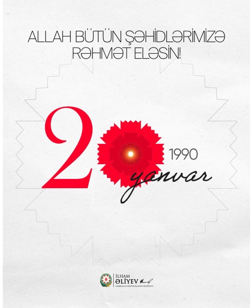 Azərbaycan Respublikasının Prezidenti İlham Əliyev 20 Yanvar faciəsi ilə əlaqədar sosial şəbəkə hesablarında paylaşım edib.