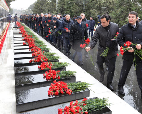 20 Yanvar - Ümumxalq Hüzn Günü ilə əlaqədar İqtisadiyyat Nazirliyinin kollektivi Şəhidlər xiyabanını ziyarət edib.