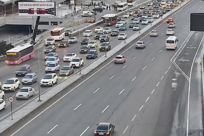 Bakının bir sıra yollarında nəqliyyatın sıxlığı yaranıb.