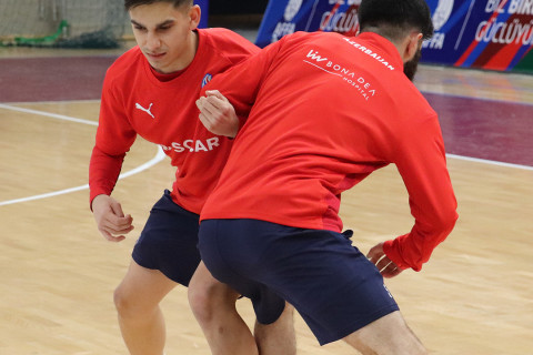 İdman.Biz bildirir ki, komanda bu gün matçın keçiriləcəyi zalda oyunöncəsi məşqinə çıxıb.