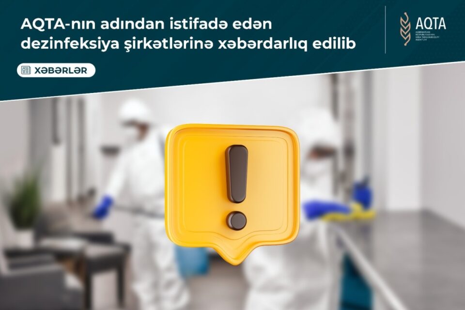 Son dövrlər Azərbaycan Qida Təhlükəsizliyi Agentliyinə (AQTA) daxil olan müraciətlər və aparılan nəzarət tədbirləri zamanı müəyyən edilib ki, bəzi dezinfeksiya xidməti göstərən özəl şirkətlər tərəfindən Agentliyin adından sui-istifadə hallarına yol verilir.