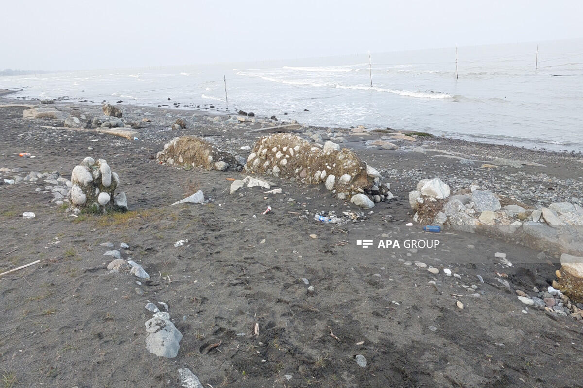 Lənkəranda Xəzər dənizində nəhəng beton bünövrələr üzə çıxıb.