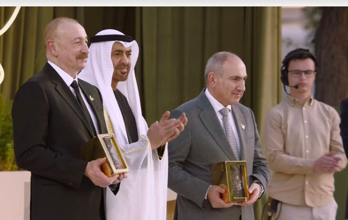 ...Əbu-Dabidə keçirilən bu mükafatlandırma mərasimi ilə bağlı qeyd edəcəyim son məqam odur ki, bu mərasim rəmzi məna daşıyır. Çünki Ermənistan ilə Azərbaycan arasında sonuncu danışıqlar raundu ötən ilin iyul ayında, tarixi Vaşinqton Sammitindən cəmi bir ay əvvəl məhz burada baş tutmuşdur. Əziz qardaşımız Şeyx Məhəmmədin dəstəyi ilə sülhün bərqərar olunması üçün son razılığa burada gəldik və həmin razılıq daha sonra Vaşinqtonda rəsmiləşdirilmişdir".