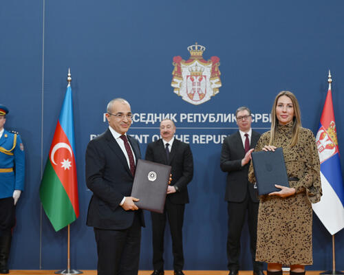 “Azərbaycan Respublikasının İqtisadiyyat Nazirliyi ilə Serbiya Respublikasının İqtisadiyyat Nazirliyi arasında Anlaşma Memorandumu”nu Azərbaycanın iqtisadiyyat naziri Mikayıl Cabbarov və Serbiya Baş nazirinin birinci müavini, iqtisadiyyat naziri xanım Adriyana Mesaroviç mübadilə etdilər.