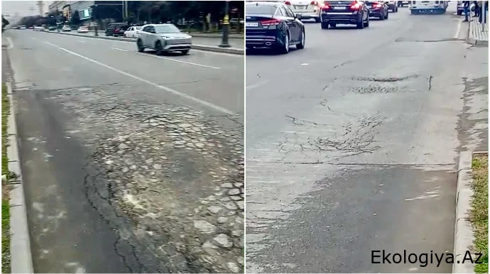 Görüntülərdən aydın olur ki, yolun avtobuslar üçün ayrılmış hissəsində asfalt örtüyü aşınıb.