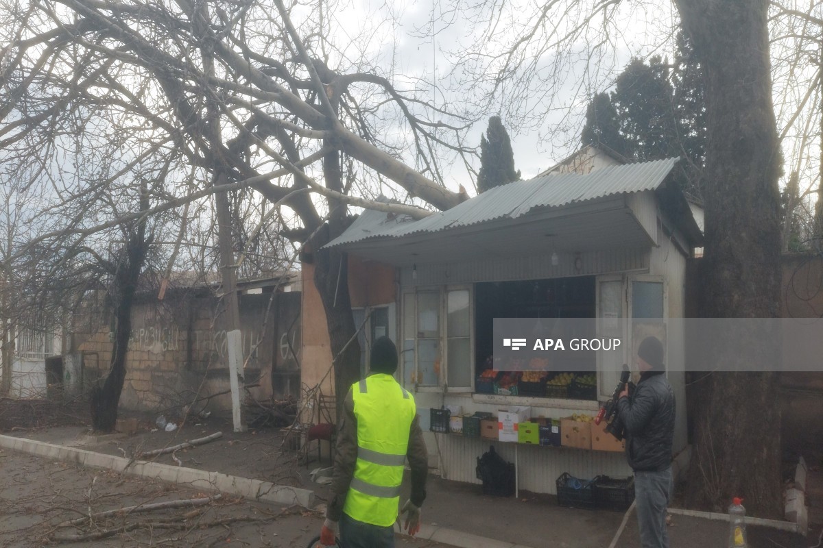 Bundan başqa, iri gövdəli ağacların biri aşaraq şəhər ərazində mağazanın üzərinə düşüb. Bəzi ərazilədə isə elektrik enerjisinin verilməsində fasilələr yaranıb.