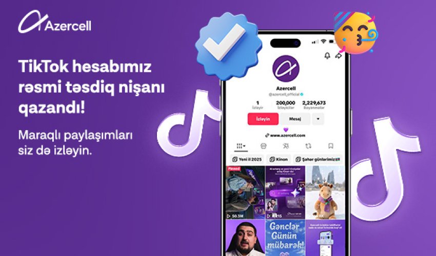 Platforma tərəfindən təqdim olunan rəsmi təsdiq nişanı yalnız aktiv, etibarlı və orijinal məzmun paylaşan, həmçinin “TikTok”un Xidmət Qaydaları və Cəmiyyət Təlimatlarına tam əməl edən səhifələrə verilir. Azercell-in hesabı bütün verifikasiya meyarlarına uyğunluq nümayiş etdirərək bu statusu əldə edib.
