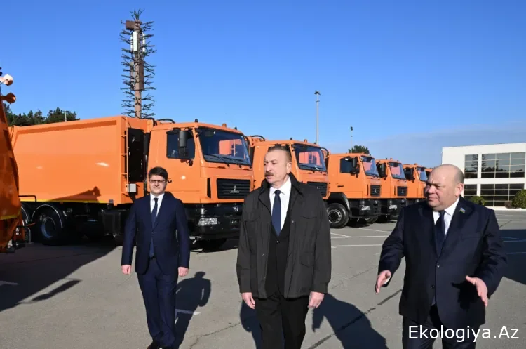 PrezidentBakıda məişət tullantıları daşıyan texnikalarla tanış oldu - FOTO