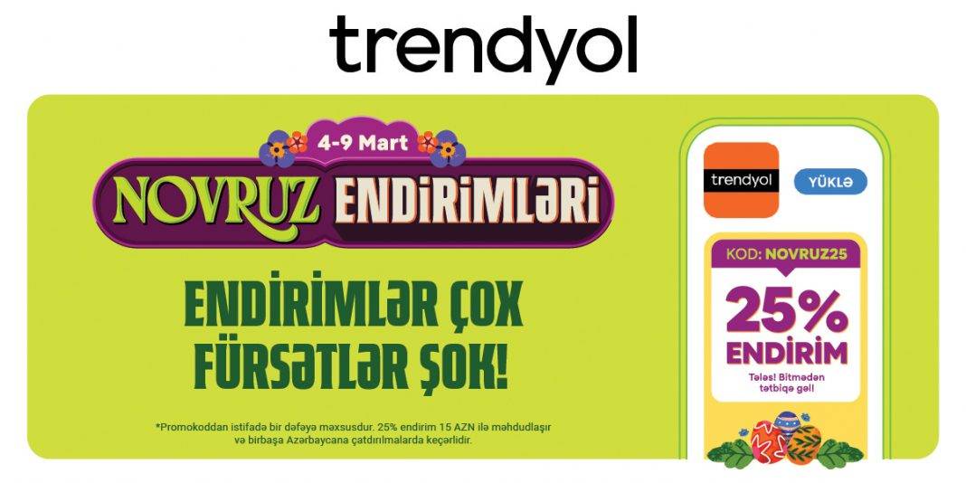 Trendyol müştəriləri “Novruz endirimləri” günlərində “NOVRUZ25” kodu ilə 15 manata qədər 25% endirim əldə edəcəklər.