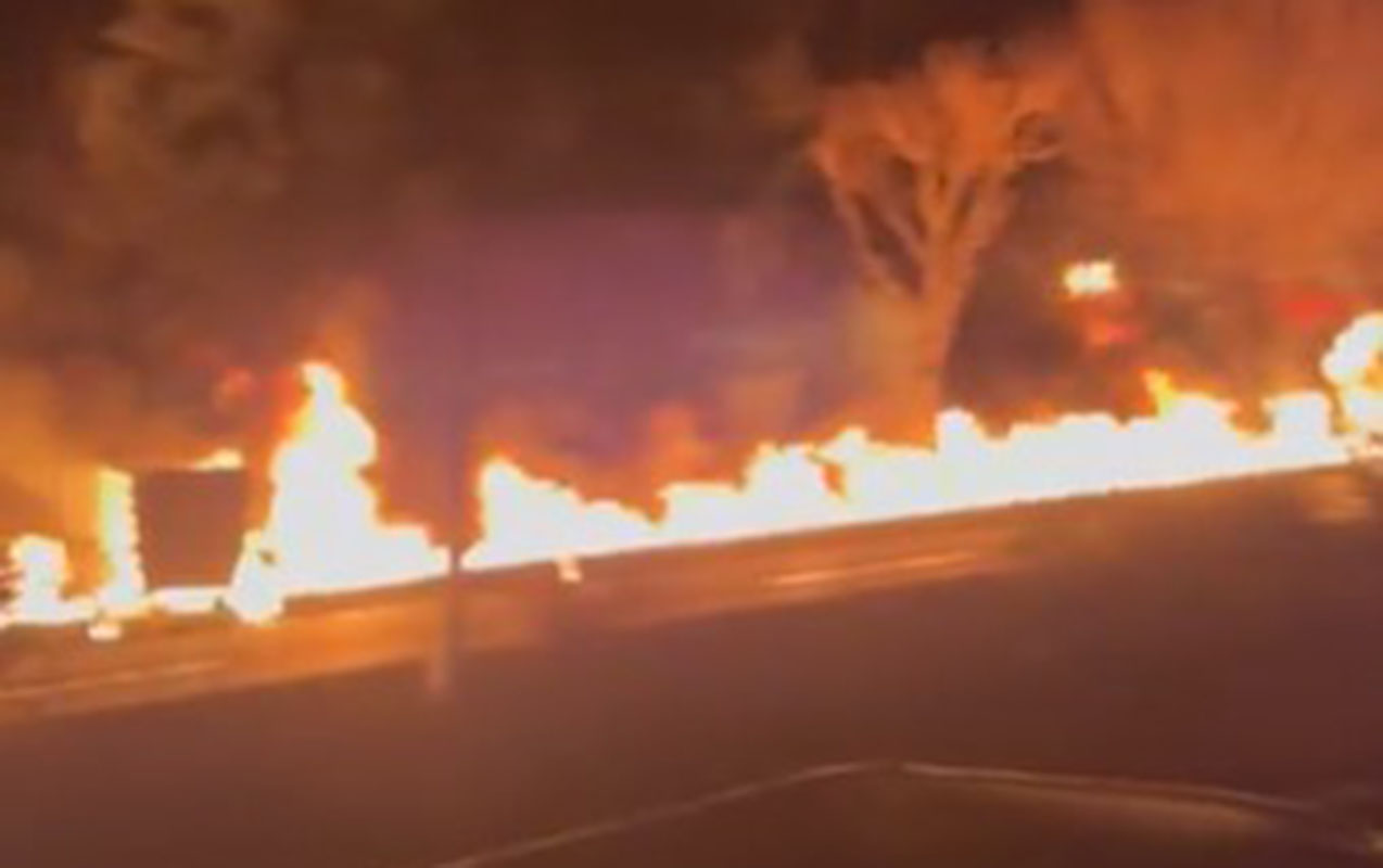 Sosial mediada paylaşılan kadrlarda həmçinin Şəhran neft anbarı ərazisindən sızan və yol boyunca yanan yanacağın görüntüləri də yer alıb.