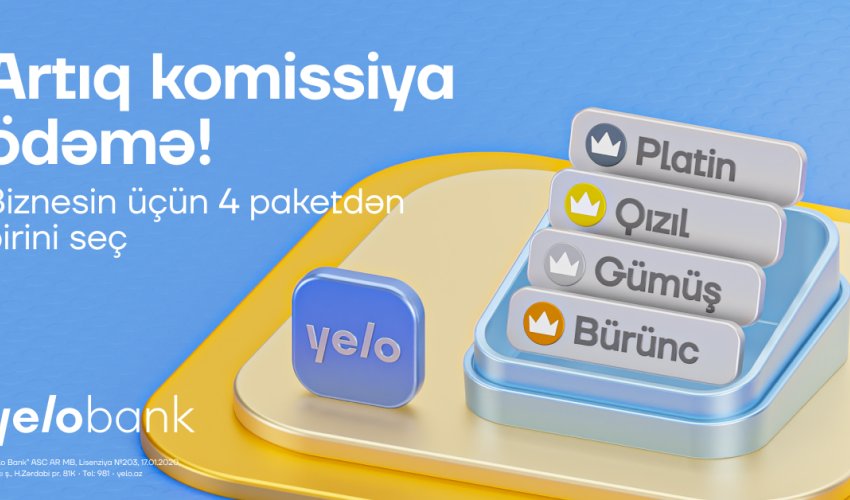 Yelo Bank-ın tarif paketləri ilə biznesinə çeviklik qat, büdcəni daha yaxşı idarə et və əlavə xərcləri düşünmə. Daha ətraflı məlumat və tarif paketi seçmək üçün: //ylb.az/biznestarifler.