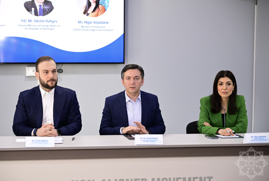 AZƏRTAC xəbər verir ki, Azərbaycan xarici işlər nazirinin müavini, COP29-un baş danışıqçısı Yalçın Rəfiyev və COP29-un iqlim üzrə yüksəksəviyyəli çempionu, Milli Məclisin deputatı Nigar Arpadarai Samed Ağırbaşa Qoşulmama Hərəkatı Gənclər Təşkilatı barədə məlumat veriblər.