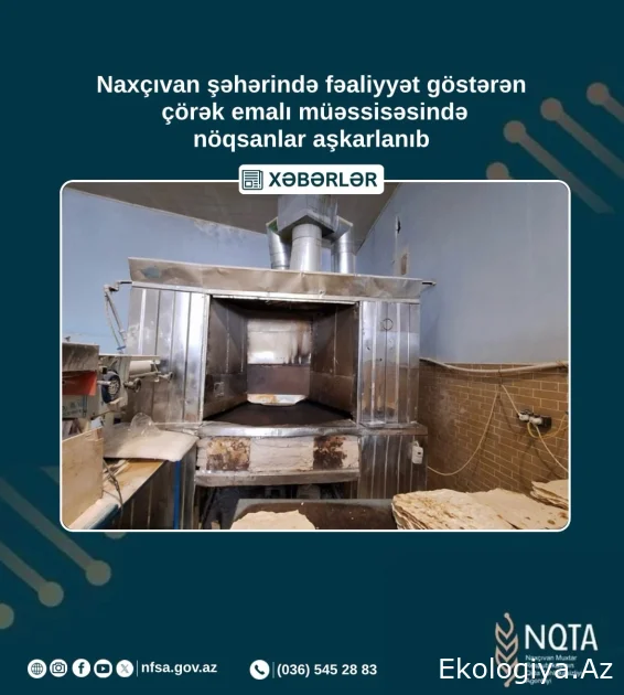 Agentlikdən bildirilib ki, divar və tavan səthlərinin tamlığının pozulduğu, yuyucu maddələr və dezinfeksiyaedici vasitələrin saxlanması üçün xüsusi yerlərin təşkil edilmədiyi, iş prosesi zamanı əmələ gələn tullantılar (qida tullantıları) ağzı kip bağlanan, qoxu yaymayan və su keçirməyən paketlərdə tullantılar üçün ayrılmış qablarda saxlanılmadığı, birdəfəlik nəzərdə tutulmuş qablaşdırma vasitələrindən təkrar istifadə olunduğu, qida məhsulları ilə təmasda olan taxta altlıqların yararsız vəziyyətdə olduğu, dezinfeksiya işlərinin aparılmadığı və sənədləşdirilmədiyi, əllərin yuyulması üçün sahələr müvafiq qaydada yerləşdirilmiş əlyuma çanaqları ilə təchiz olunmadığı aşkarlanıb. Nöqsanların aradan qaldırılması üçün müvafiq göstərişlər verilib, sahibkar barəsində inzibati protokol tərtib olunub. Bu kimi halların baş verməməsi məqsədilə agentlik tərəfindən mütəmadi olaraq bütün qida obyektlərində maarifləndirilmə tədbirləri aparılıb və müvafiq göstərişlər verilib. Verilmiş tapşırıqların yerinə yetirilməsi və istehlakçı hüquqlarının müdafiəsi istiqamətində nəzarət tədbirləri davam etdirilir və aşkarlanmış nöqsanlarla bağlı zəruri tədbirlər görüləcək.
