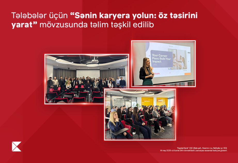 Əməkdaşlığın davamı olaraq 2026-cı il 25 fevral tarixində Təhsil Tələbə Kredit Fondunun təhsil kreditindən yararlanan tələbə və məzunları üçün “Sənin karyera yolun: Öz təsirini yarat” mövzusunda təlim keçirilib. Təlim “Kapital Bank”ın İstedadların idarə edilməsi departamentinin istedadların cəlbi və seçimi şöbəsinin müdiri Nərgiz Əzimova tərəfindən aparılıb.