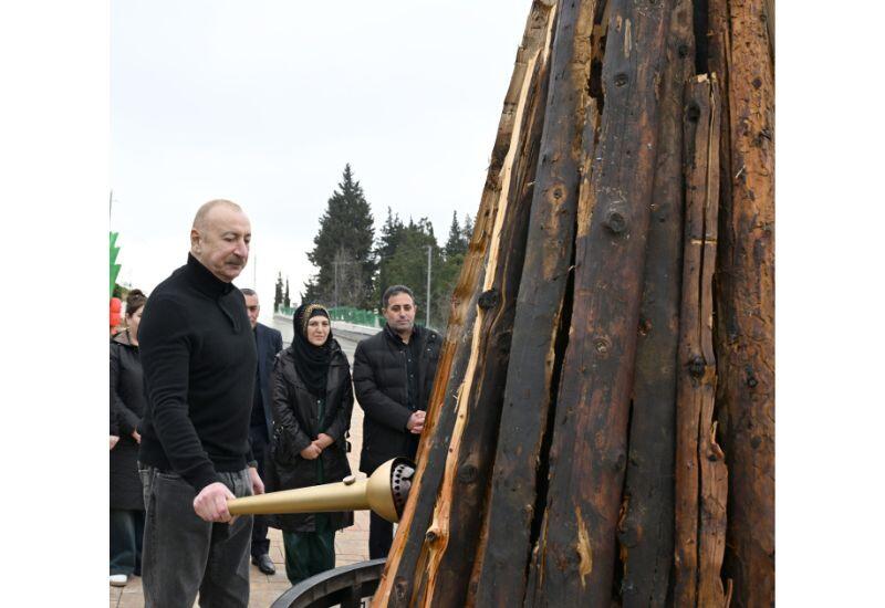 Day.Az AZƏRTAC-a istinadən bildirir ki, daha sonra Prezident sakinlərlə birlikdə Novruz tonqalını alovlandırıb.