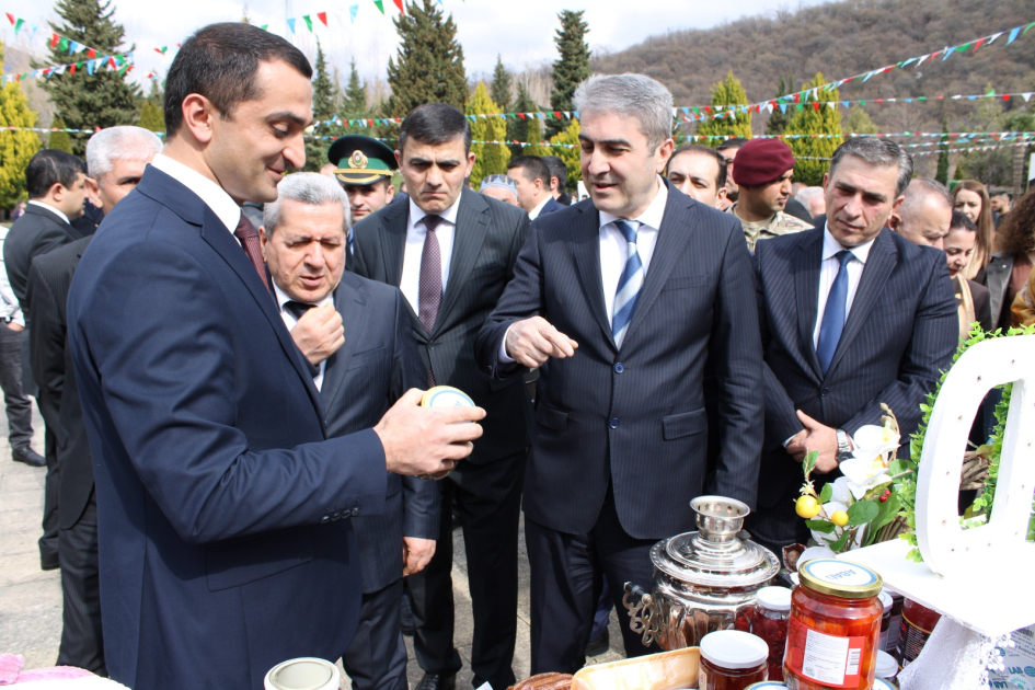 AZƏRTAC-ın bölgə müxbiri xəbər verir ki, Novruzun gəlişini tərənnüm edən atributlarla bəzədilmiş məkanda təşkil olunan mərasimdə ulu babalarımızdan bizə yadigar qalan qədim el sənətləri nümayiş etdirilib. Eyni zamanda, bayramın bolluq və bərəkət rəmzi olan səməni və müxtəlif şirniyyat nümunələri süfrələri bəzəyib.
