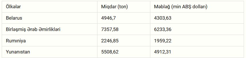 Məlumata görə, bu, 2025-ci ilin eyni dövrü ilə müqayisədə dəyər baxımından 8,8 milyon ABŞ dolları və ya 2 dəfə, həcm ifadəsində isə 9,7 min ton və ya 1,9 dəfə çoxdur.